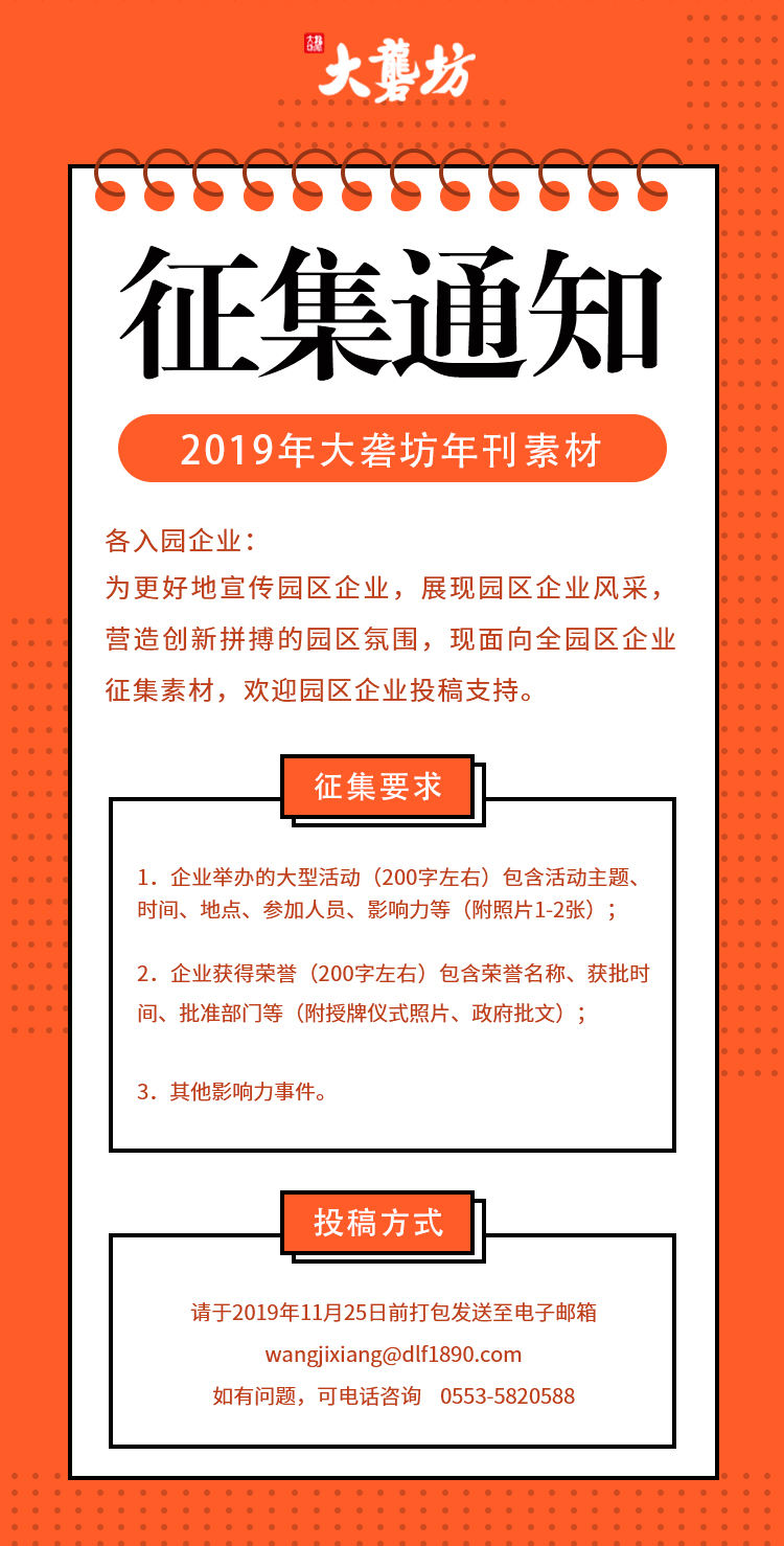 關(guān)于2019年大礱坊年刊素材征集通知