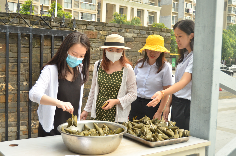 工作人員為園區(qū)小伙伴發(fā)放粽子
