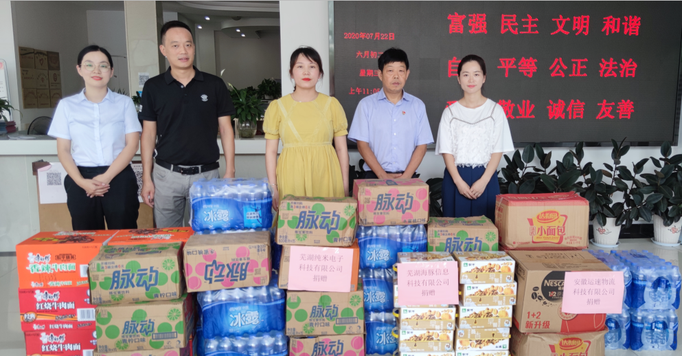汛情依舊嚴(yán)峻,形勢(shì)不容樂(lè)觀(guān),園區(qū)企業(yè)紛紛伸出援手,咨詢(xún)捐贈(zèng)事宜,7月22日,園區(qū)再次組織蕪湖純米電子科技有限公司、蕪湖海豚信息科技有限公司、安徽運(yùn)速物流科技有限公司三家企業(yè)前往大礱坊街道捐獻(xiàn)保障物資50余件,兩次捐獻(xiàn)物資200余件,支援街道抗洪防汛,為一線(xiàn)提供物資保障。